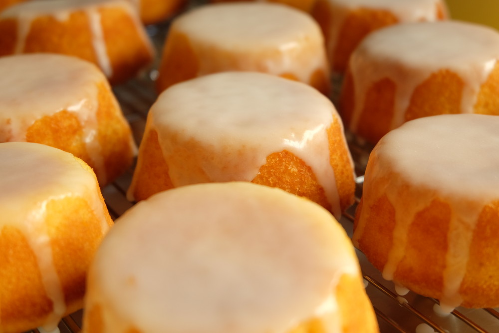 アーモンド粉の入った少し重ための生地に、ゆこうのアイシングをかけて仕上げました。