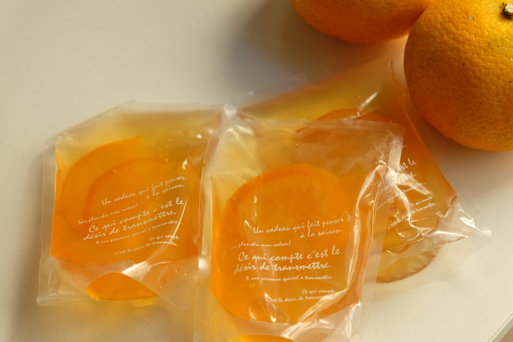 瑞々しい生地にゆこう果汁がたっぷり。ゆこうのおいしさを閉じ込めました。
