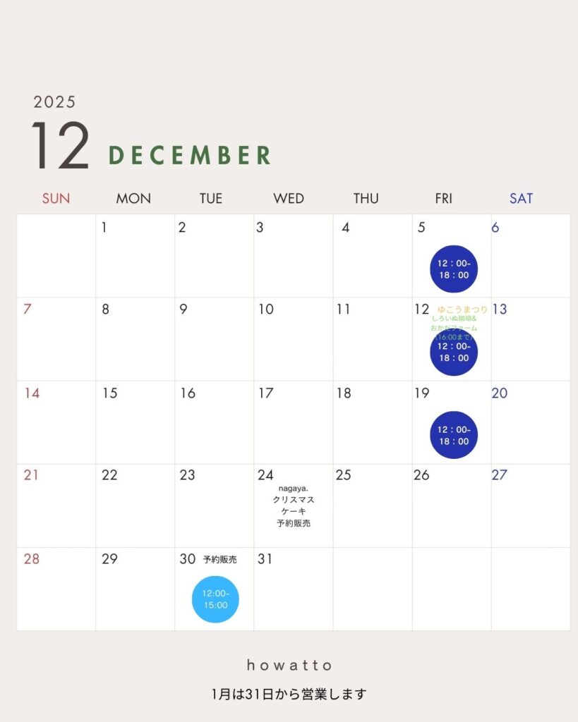 12月の予定とシュトレンのご案内