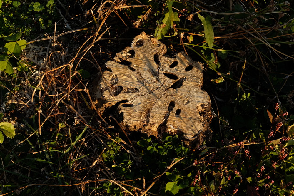 カミキリムシの被害に遭った木。