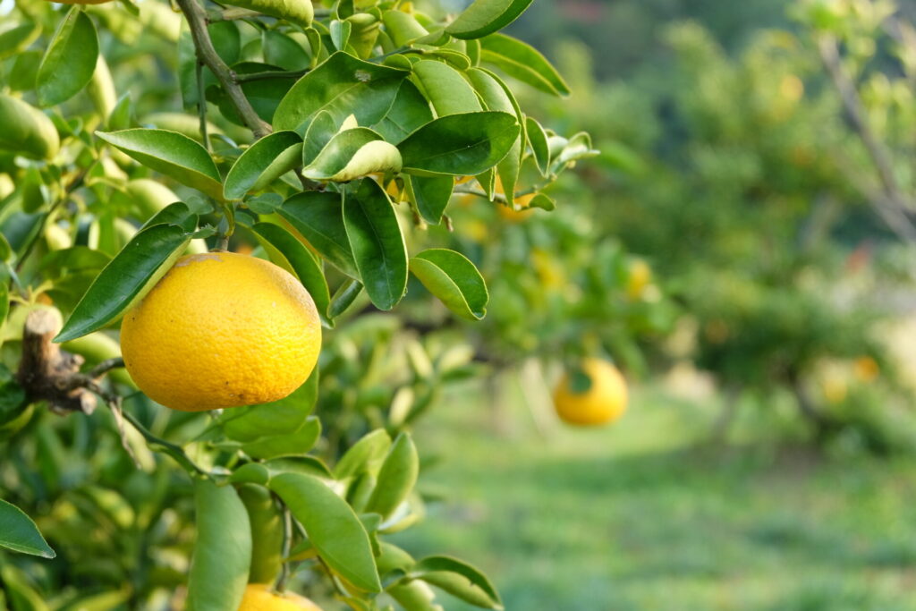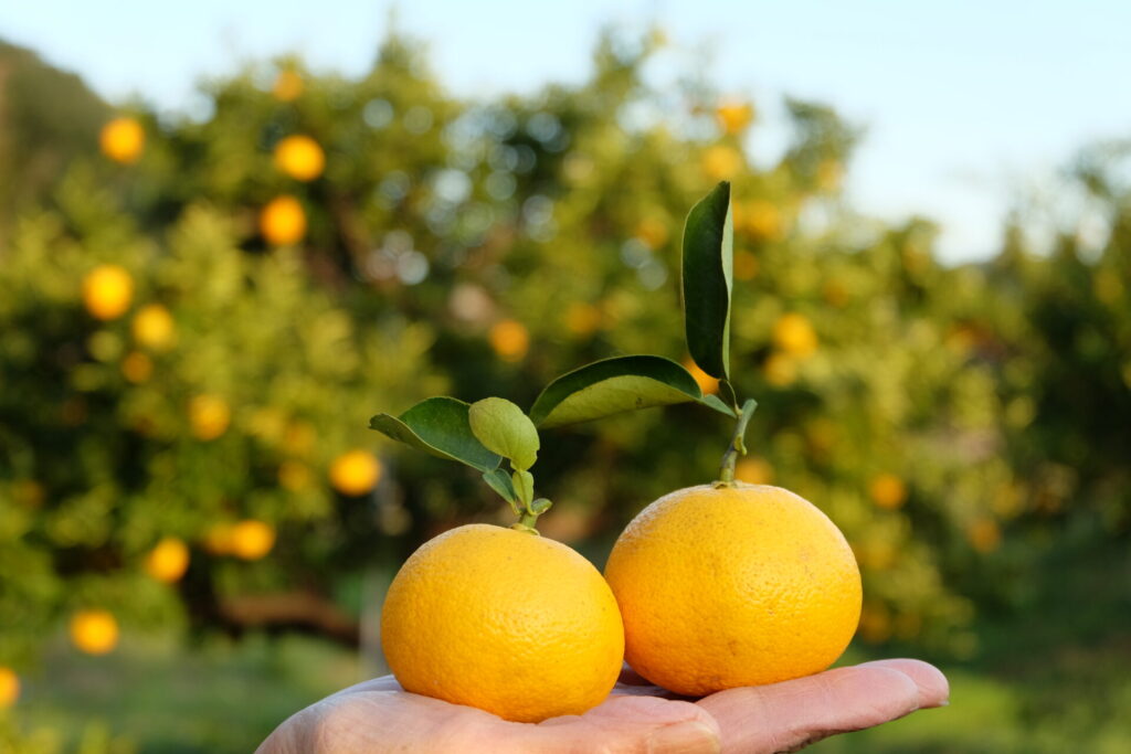ゆこうは、ゆずとだいだいの自然交配種と言われ、まろやかな味わいの果汁が特徴です。