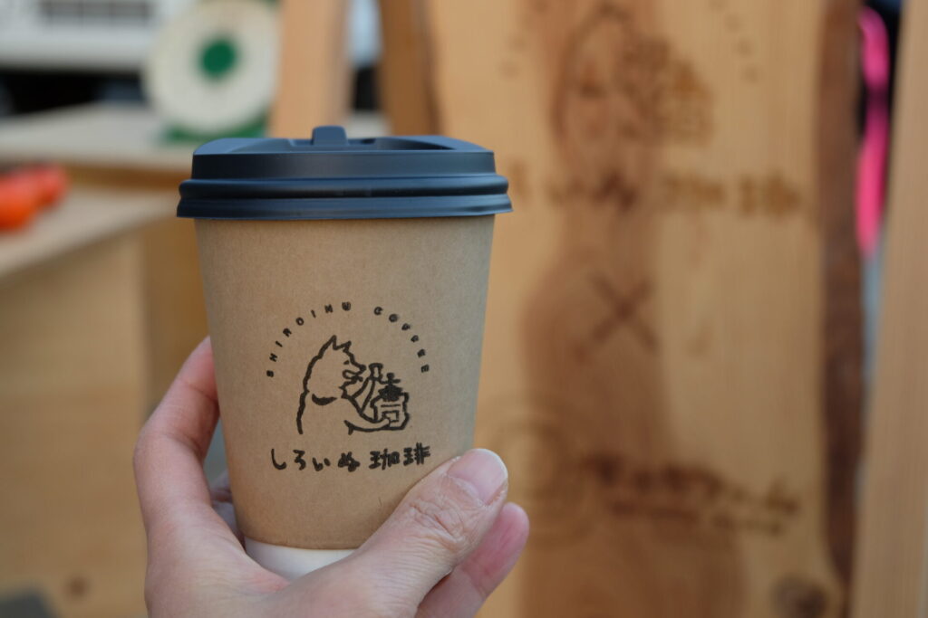農園の隣では、おかだファームの奥様が『しろいぬ珈琲』をされており、ドリンクをいただけます。